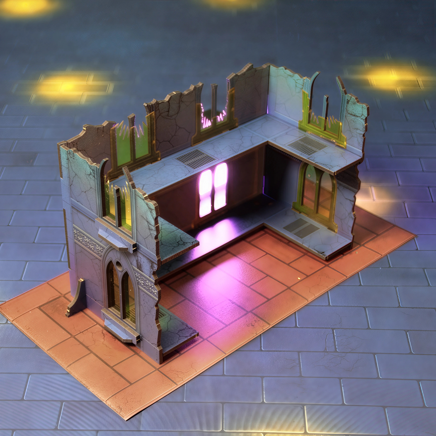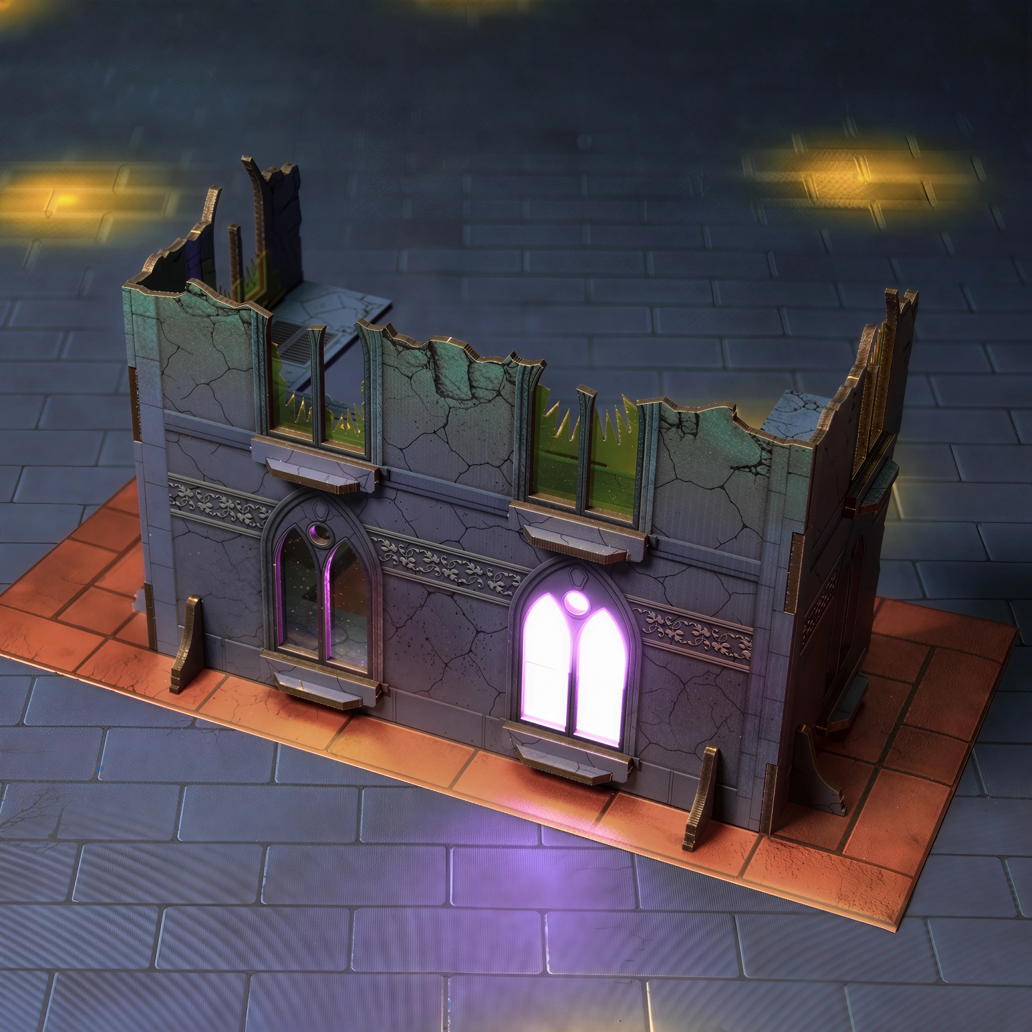 Все элементы — руины, точки контроля, игровое поле — выполнены в едином графичном стиле, полностью соответствуя требованиям GW, без ущерба для визуальной атмосферы.